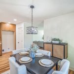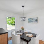 The main level features original hardwood floors, a cozy wood-burning fireplace, and sun-filled windows that brighten each space. The kitchen is a true highlight—designed for both function and style—with quartz countertops, soft-close cabinetry, and a convenient pot filler. From the dining room to the living room, the open layout offers effortless flow for everyday living or entertaining.