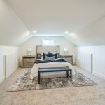 A spacious main-floor bedroom, full bath, laundry room, and access to the garage are all thoughtfully placed, along with a private stairway to the second-level primary suite. Tucked away from the rest of the home, this luxurious retreat spans nearly 500 sq ft and includes plush carpet, built-in storage, and an en suite bathroom.